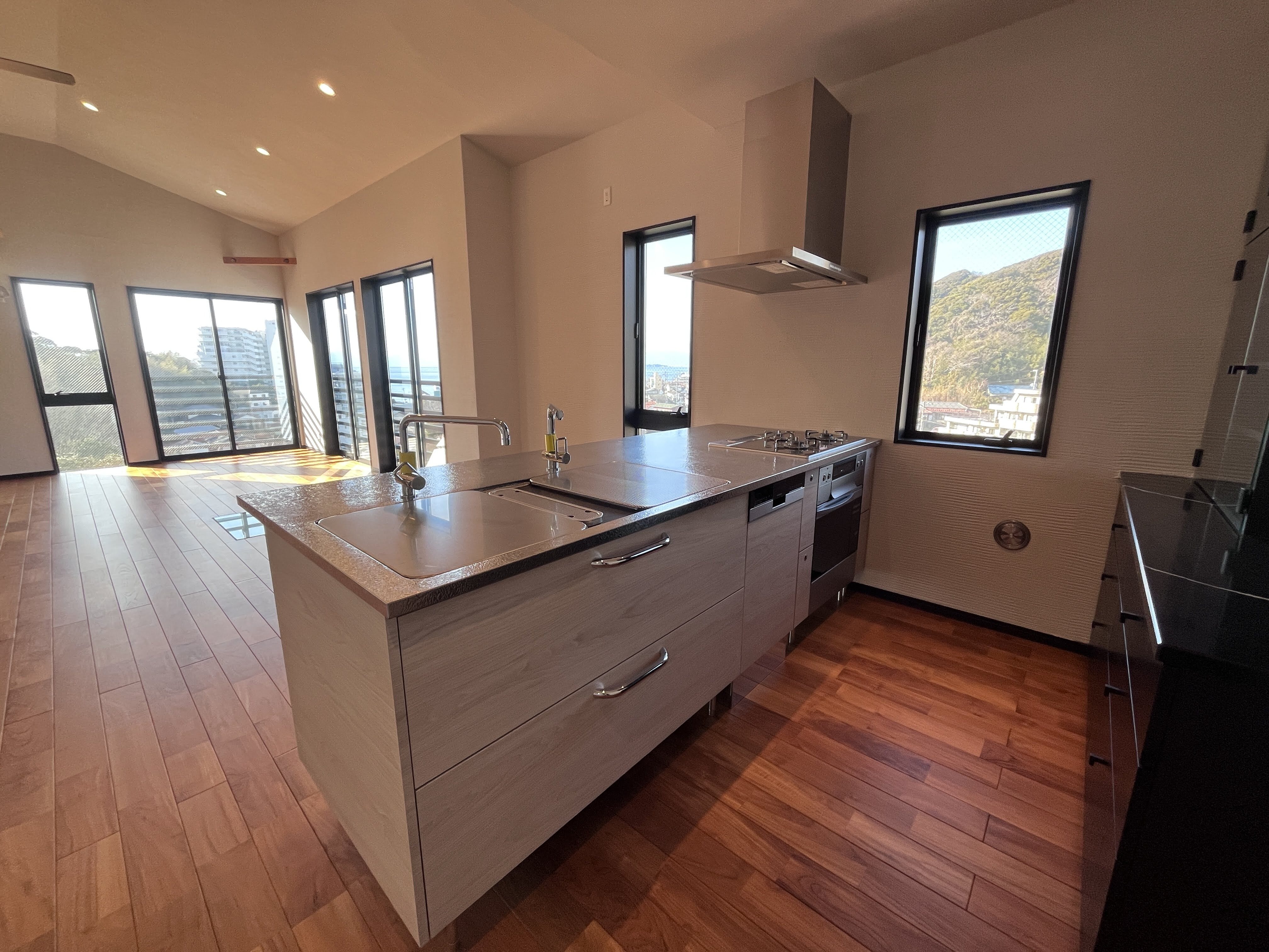 バイオエタノール暖炉もあり炎を見ながら夕日も望むことができ、最高のリラックスタイムを過ごせることでしょう。
